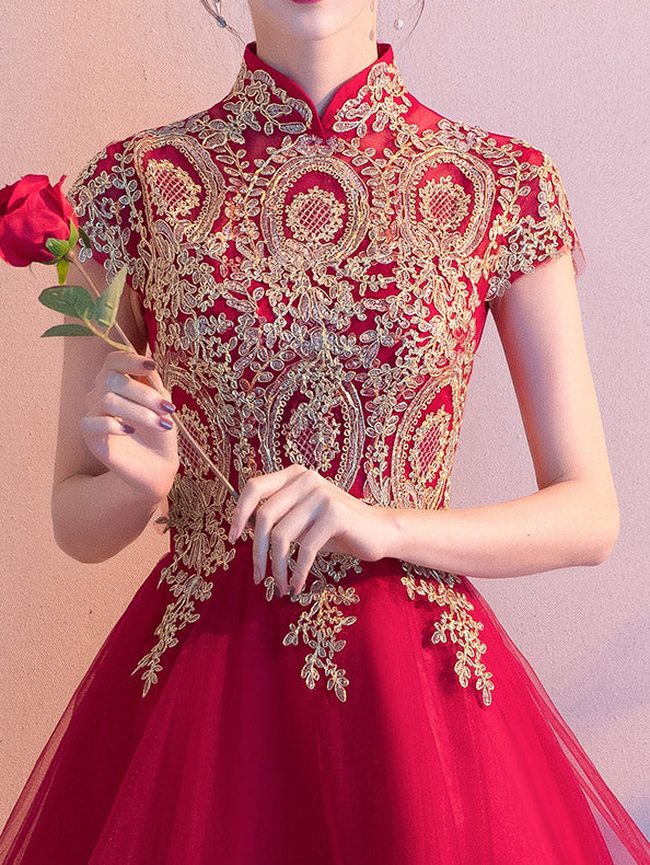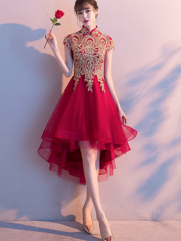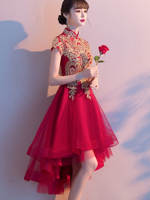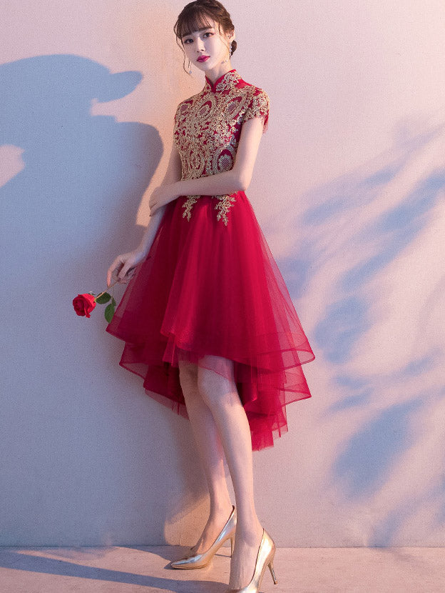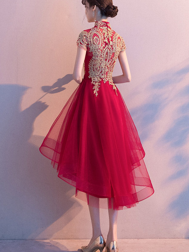 Appliques High Low Tulle Qipao Cheongsam Dress