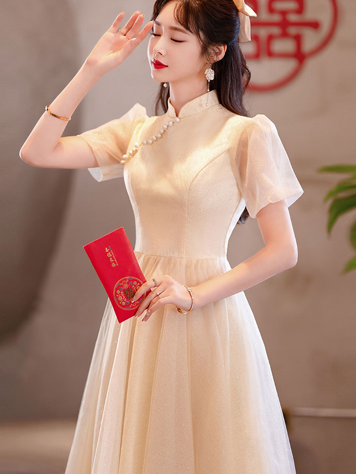 Fill in your measurements (bust, waist, hip, dress length) in the Order Note when placing order.
