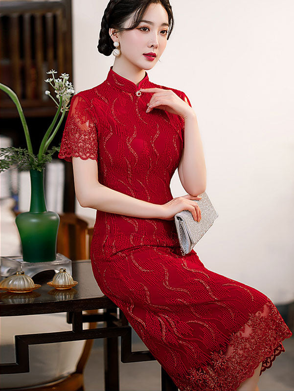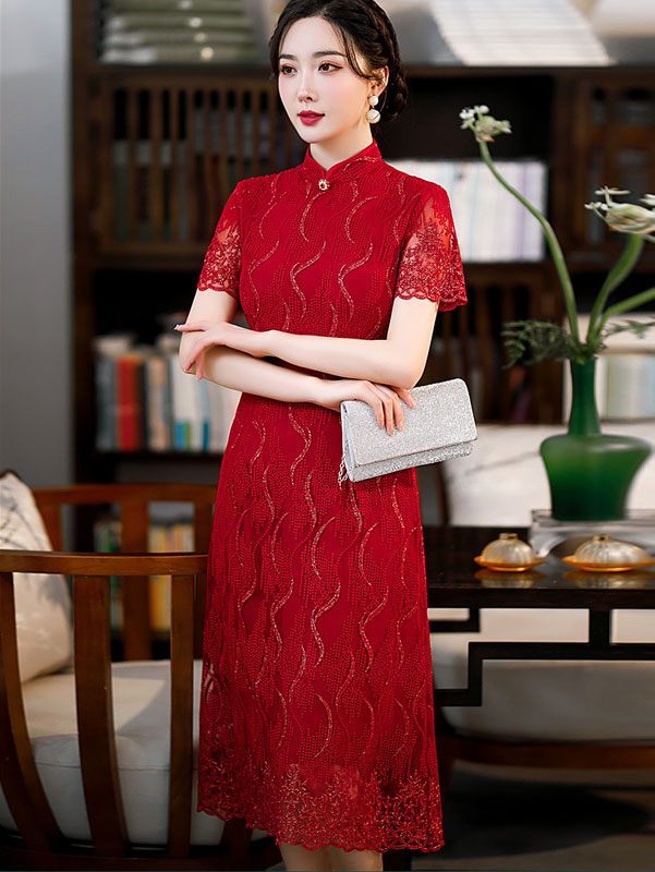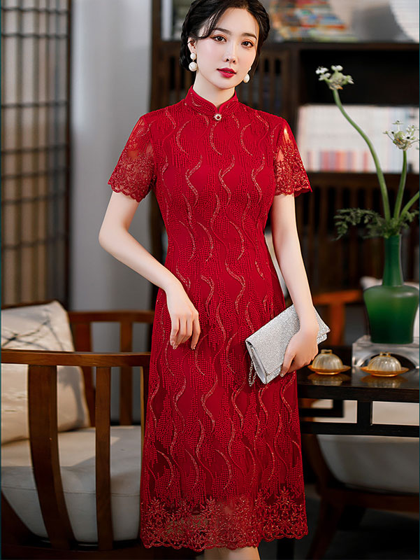 Red Bridal Mother's A-Line Qipao / Cheongsam Dress