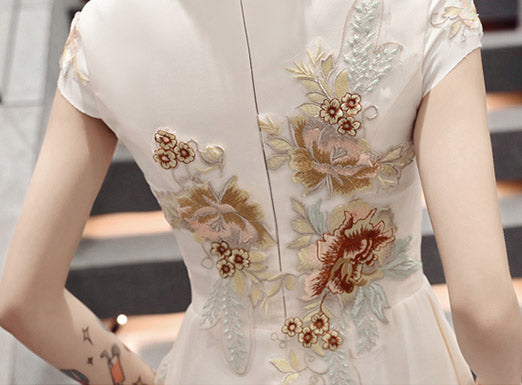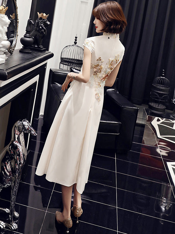 White Floral A-Line Midi Qipao / Cheongsam Party Dress