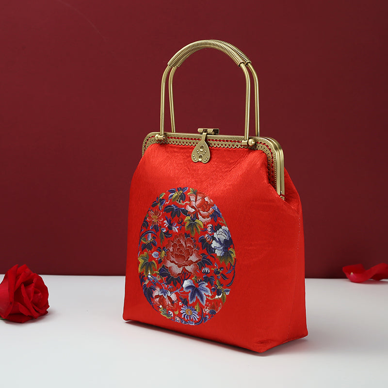 Red Printed Floral Chain Shoulder Cross Party Bag