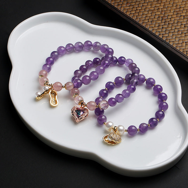 Amethyst Crystal Beads Heart Pendants Woman Bracelets