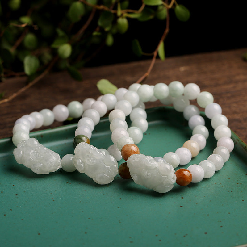 This bracelet is made of 7.5mm jadeite jade and 21*12 pixiu pendant