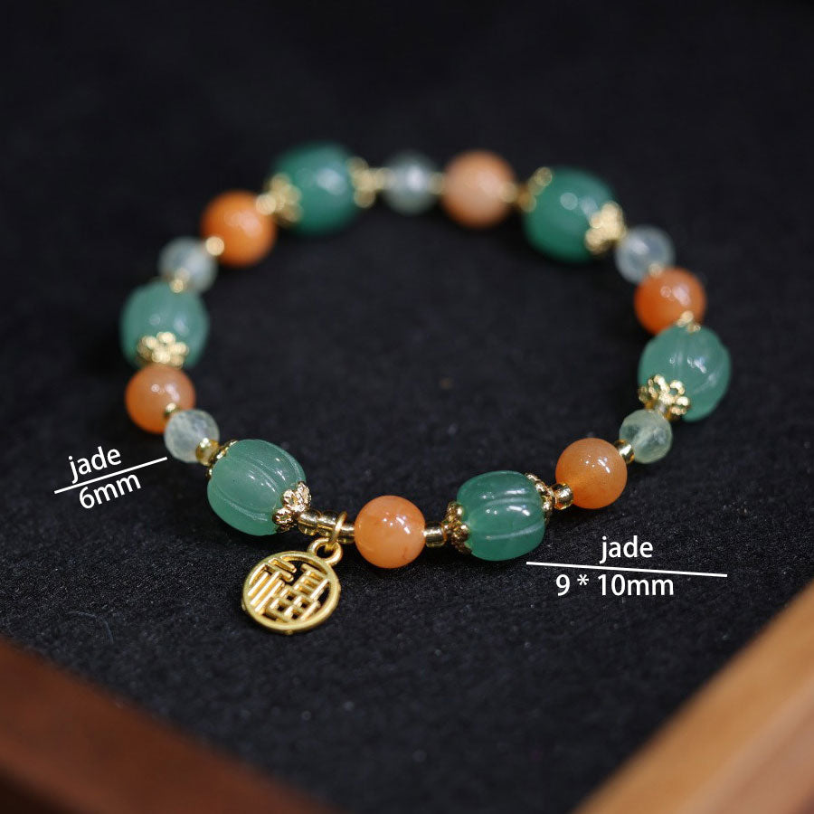 This bracelet is made of jade pumpkin beads and Fu (福) pendant