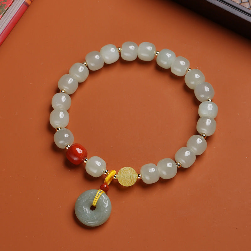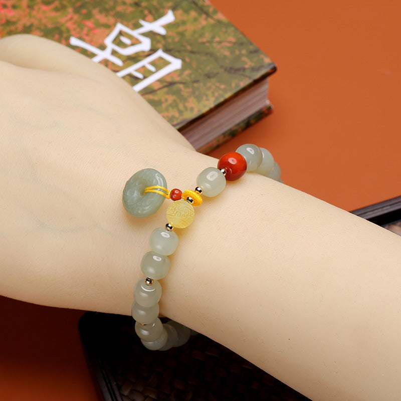 Natural Jade Beads Safety Buckle Pendant Woman Bracelets