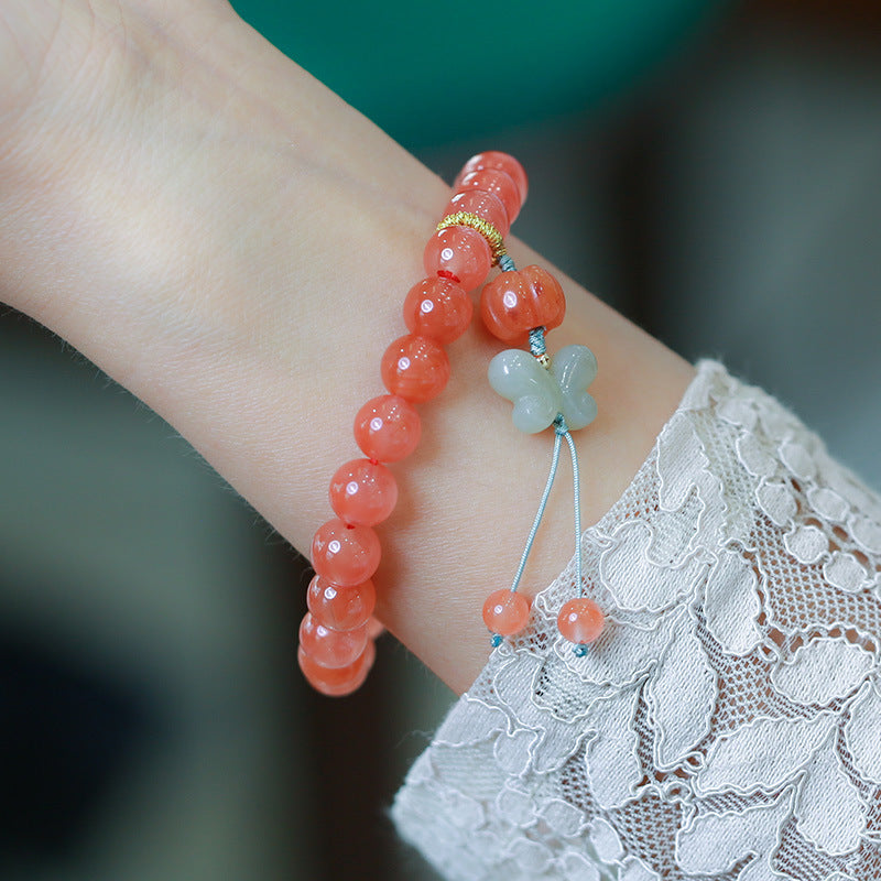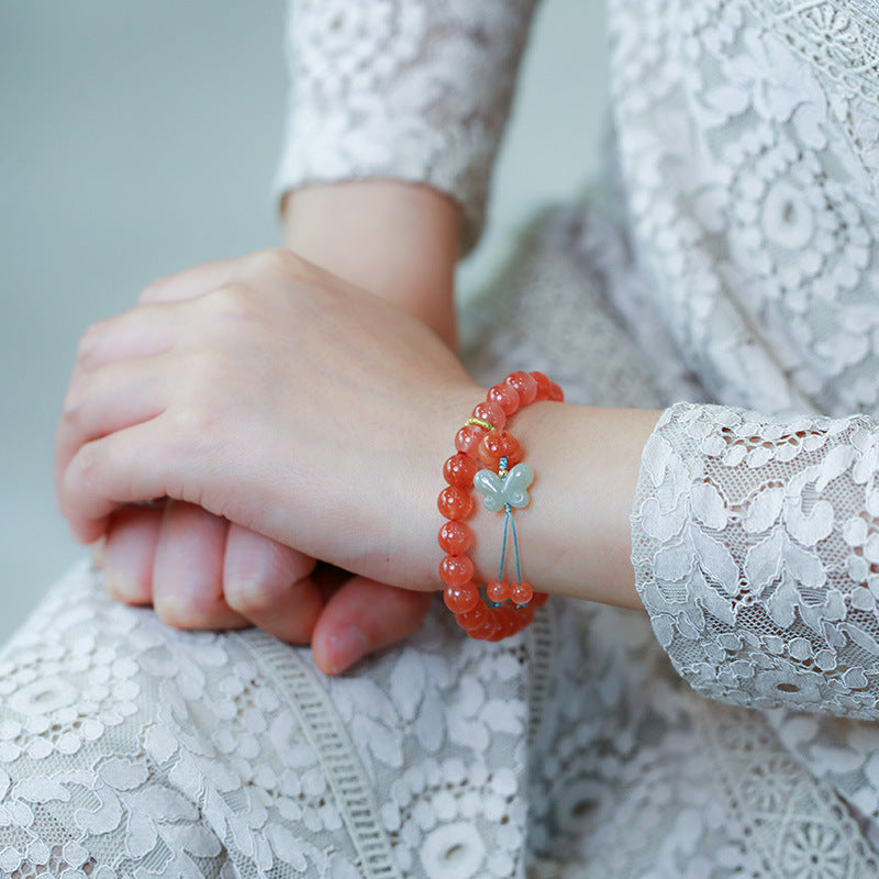 Pink Agate Beads Butterfly Pendant Beads Bracelets