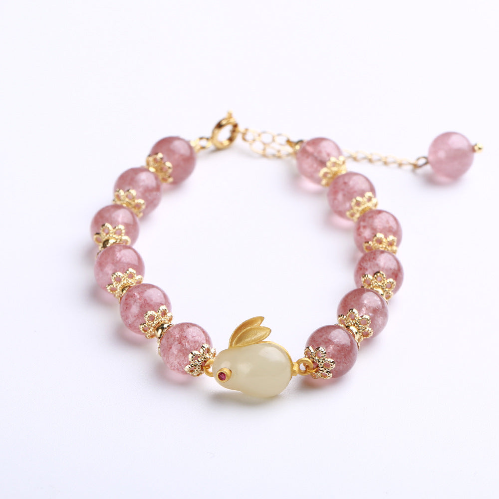 Pink Strawberry Quartz Zodiac Rabbit Beads Bracelets