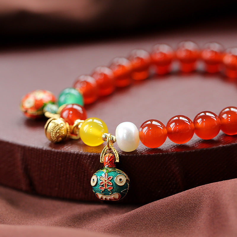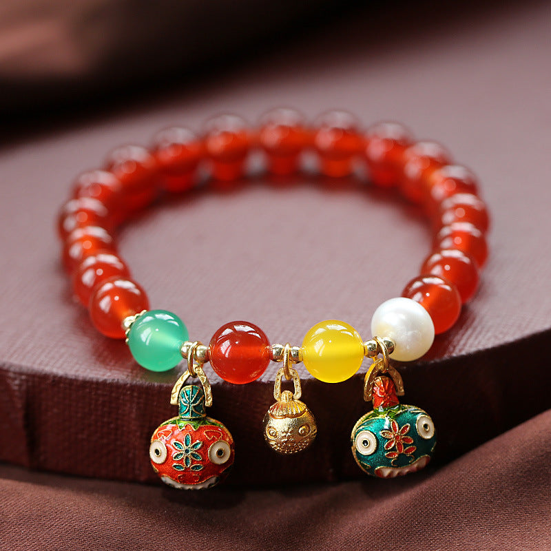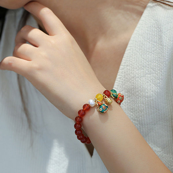 The bracelet is made of 8mm agate beads and a family of fortune beasts pendant.