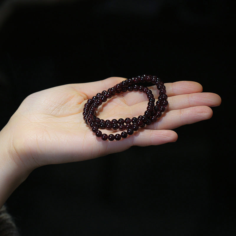 This bracelet is made of 5.5mm garnet beads