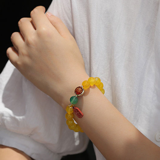 This bracelet is made of 10mm and 12 mm yellow agate.