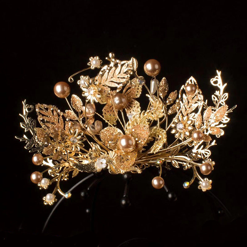 This hair accessory includes three pins and one earring set, featuring gold tone butterflies, flowers and pearls.