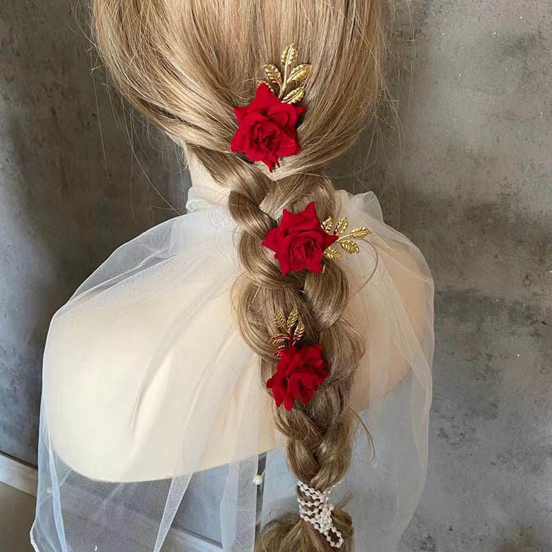 Give your wedding hairstyle a pretty, fresh look with this set of 3 rosette hair pins.