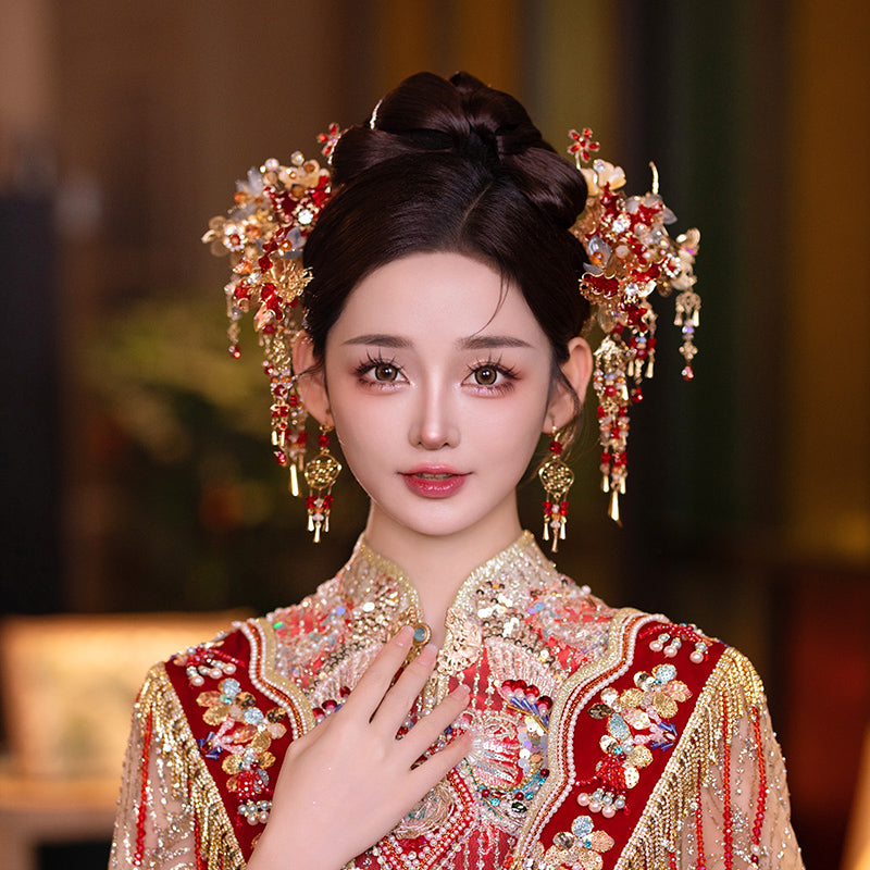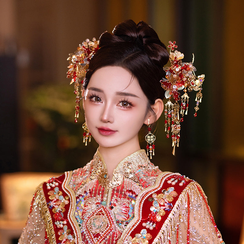 You will receive 4 pieces hairpin and one pair of earrings with clip on closure.