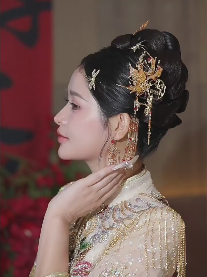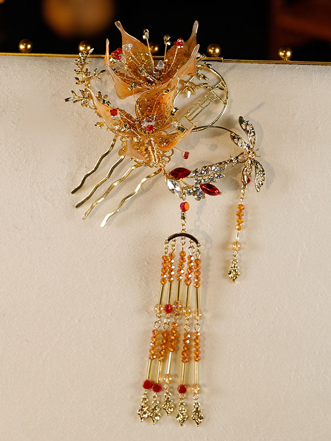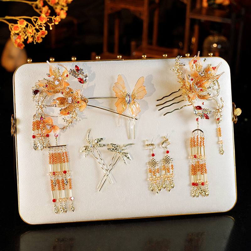 Traditional Chinese-style hair accessory set featuring delicate flower motifs, agate,