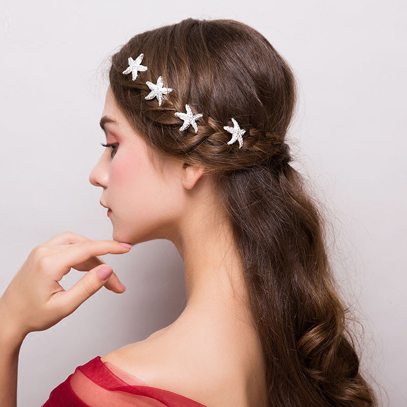 Features crystal beads, alloy wires and pins for beautifying your chignon or side-swept bangs.