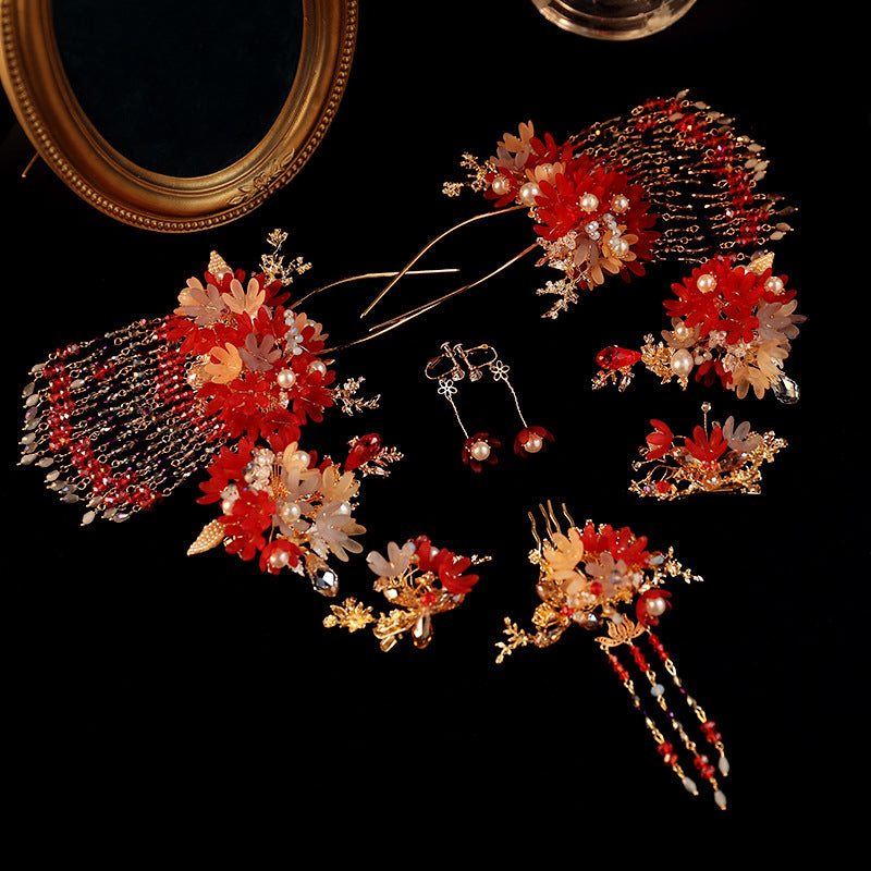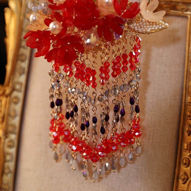 featuring alloy flowers, beads tassels & pearls. Materials: alloy, pearls