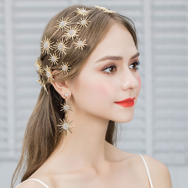 This headband vine used gilded metal vine & frame, and sparkling crystal beads,