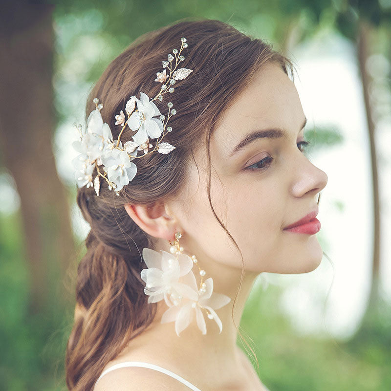 This hair vine is made of chiffon flower and pearls.