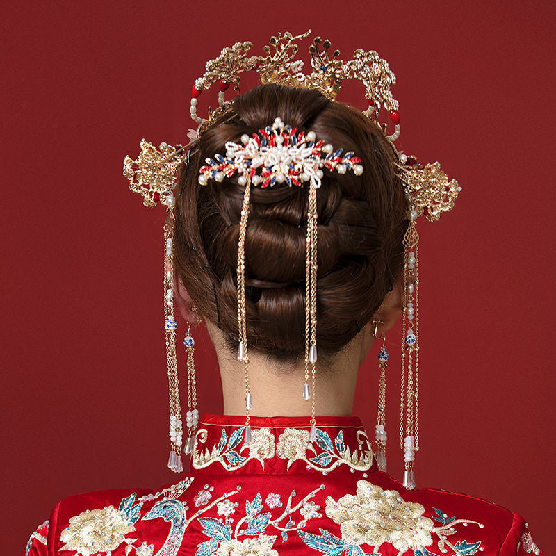 This hair accessory set included 4 pieces, featuring metal flowers & pearls. Every piece has pins.