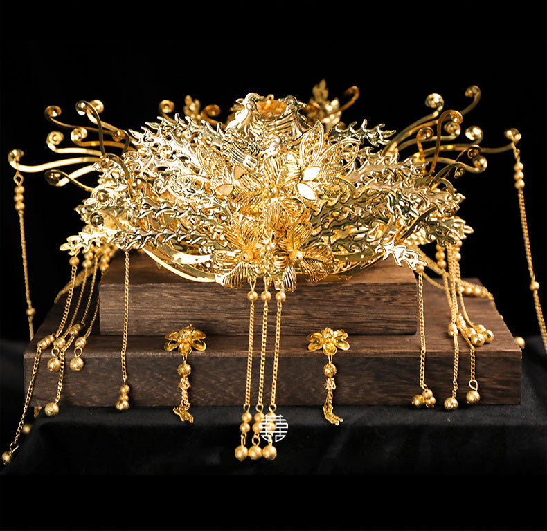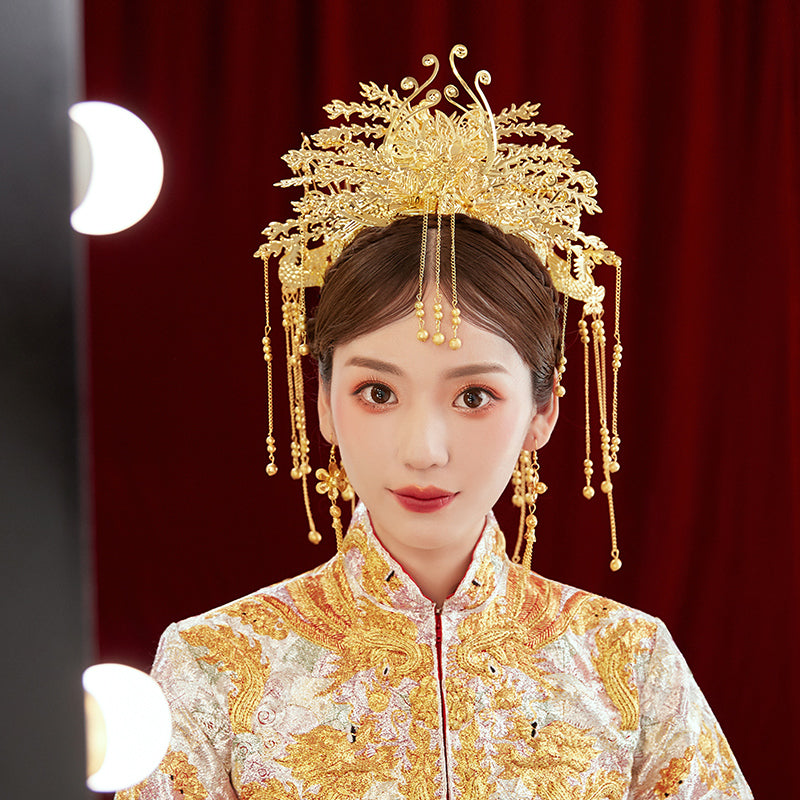 Chinese Traditional Tassel Bridal Hair Crown & Earrings