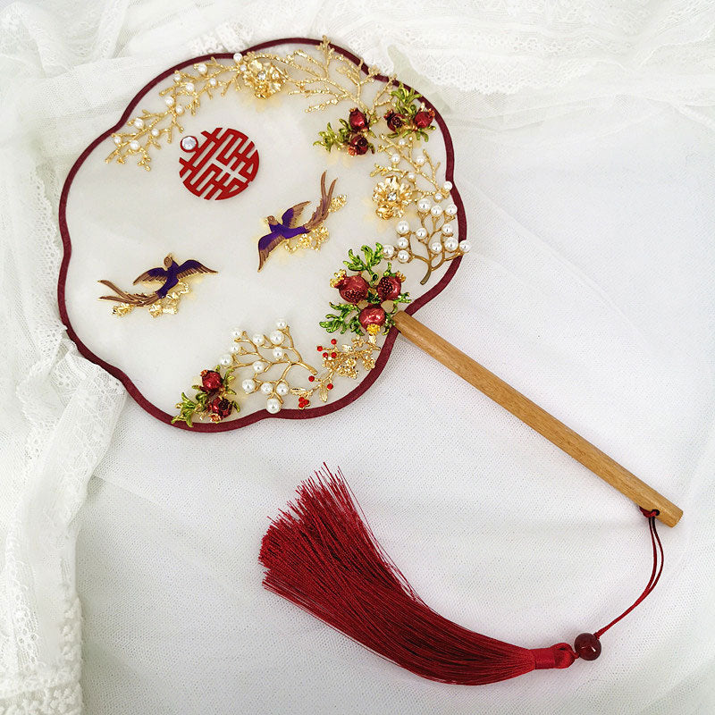 Material: This hand held fans is made of alloy, imitation pearls, and fabrics