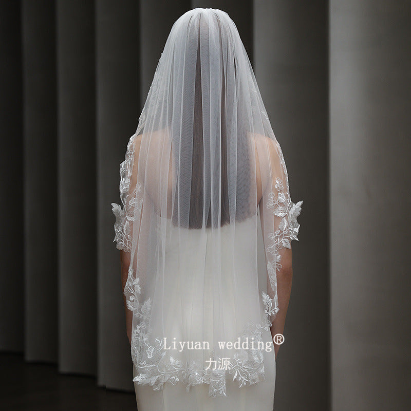 This veil is made of soft tulle, thick lace trim, with small comb.