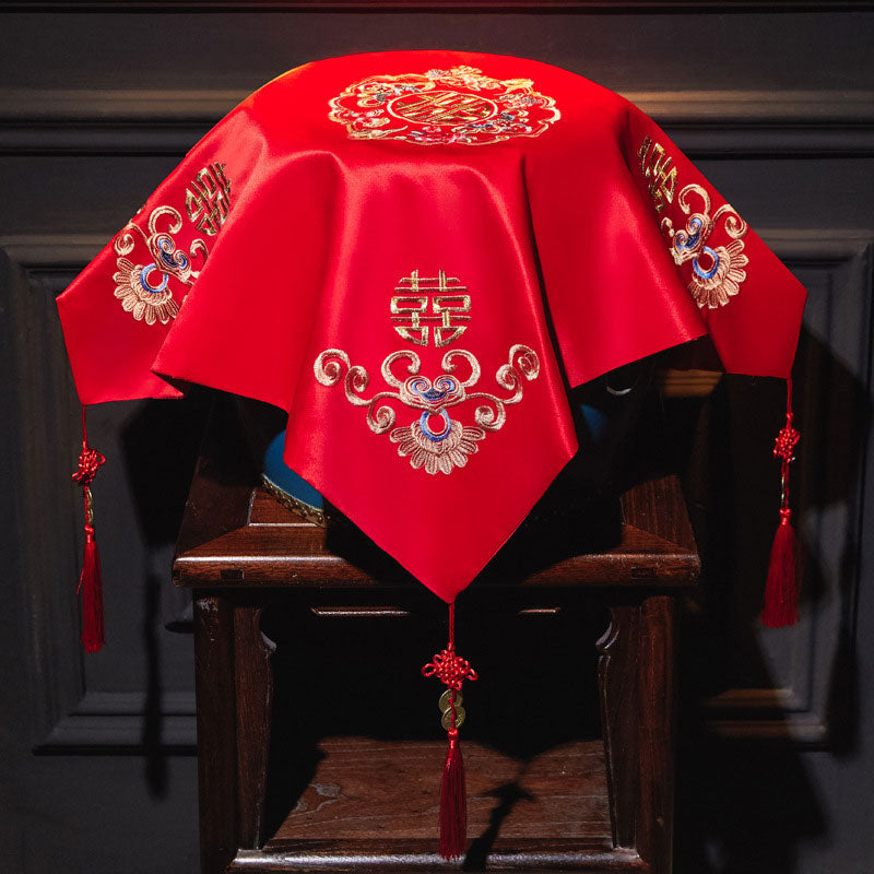 Perfect for Chinese weddings, the square head veil features a traditional Chinese vintage floral & phoenix embroidery