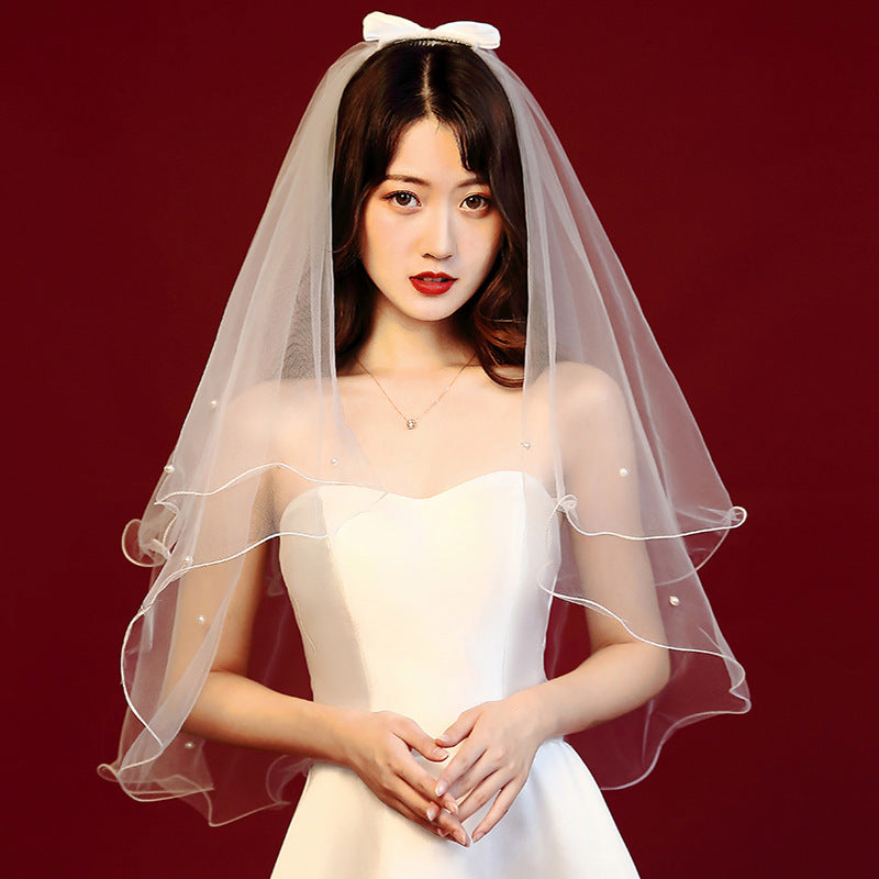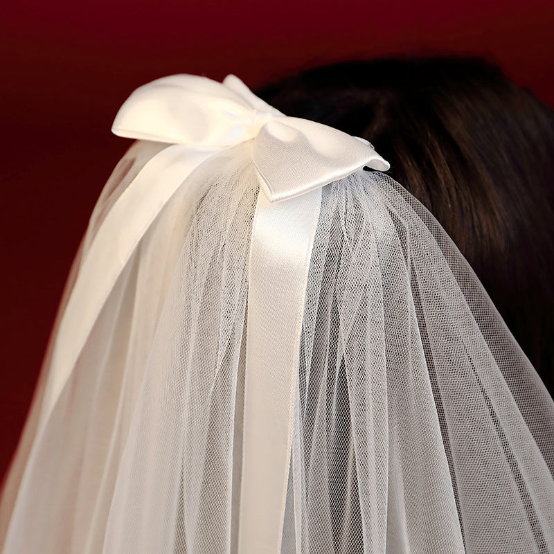 White hair veil made from exquisite tulle, features a bow-knot clip for easy.