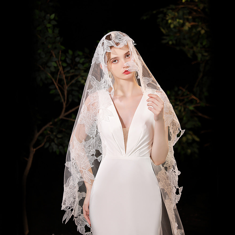 Cathedral Veils for women made of lightweight tulle and lace edge.