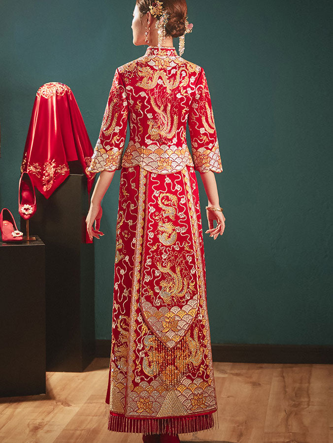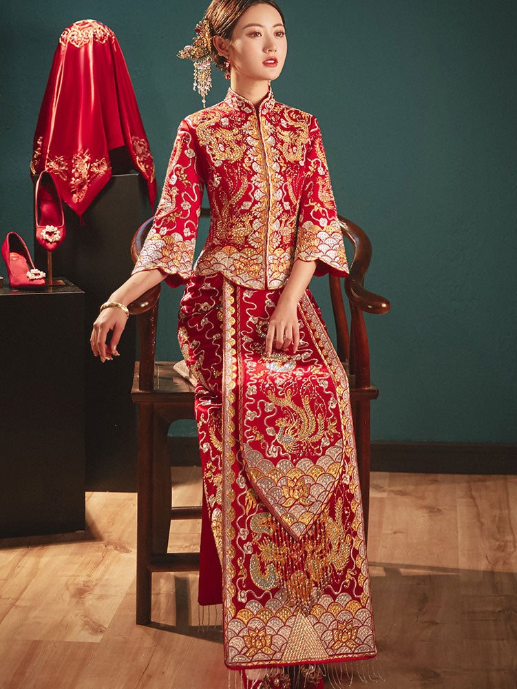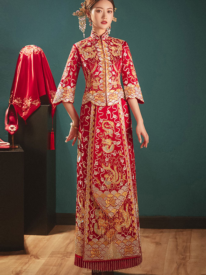 M: bust 90cm/35.4in jacket length 52cm/20.4in skirt length 96cm/37.8in