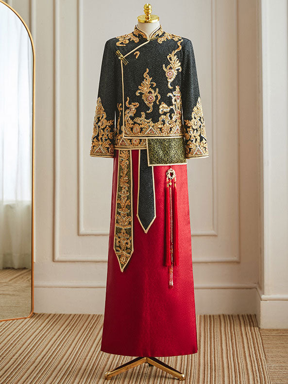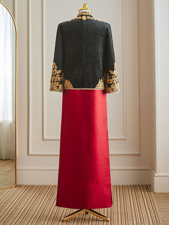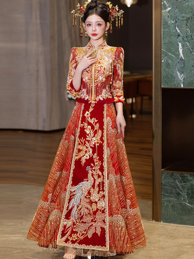 - Jacket features mandarin collar, sequins phoenix and beads tassels