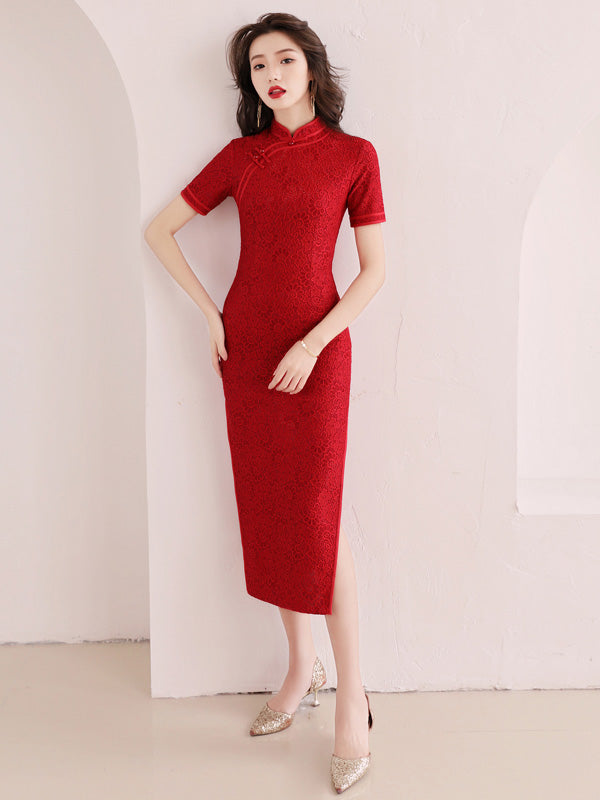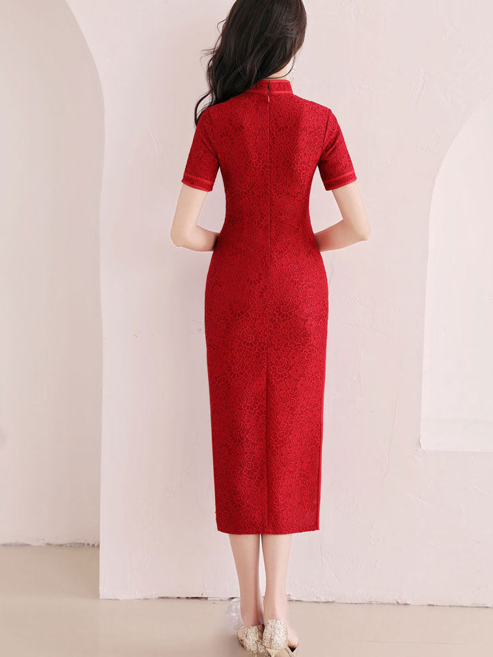 Jacquard Floral Beads Cheongsam Qipao Dress