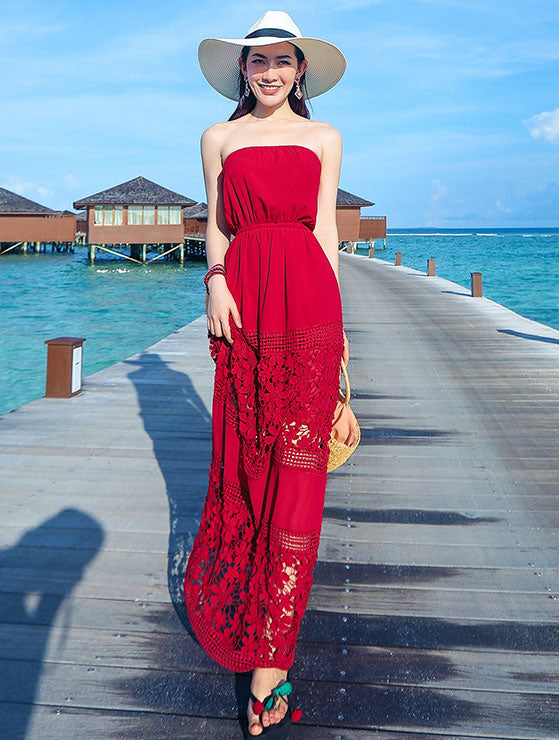 Wine Red Bandeau A-Line Maxi Wedding Prom Dress