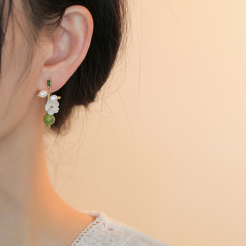 Materials: green jade, s925 silver, pearls, alloy