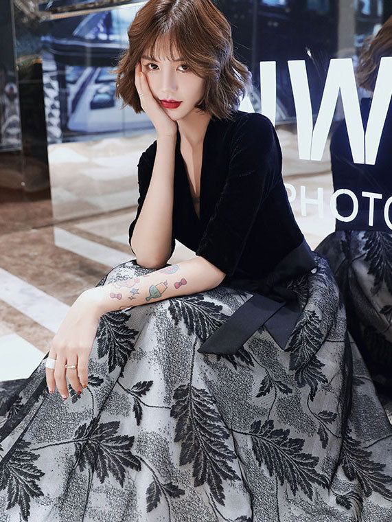 Black Fit & Flare Tie Floor-Length Prom Dress
