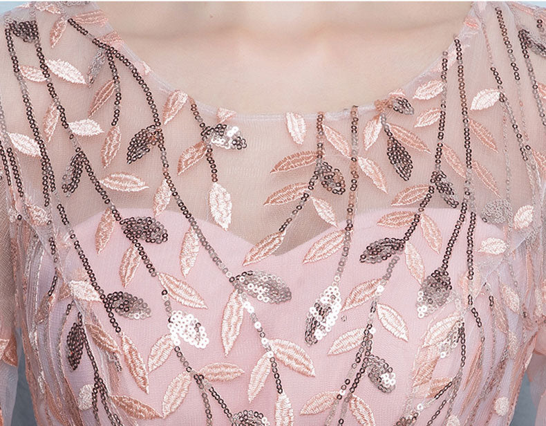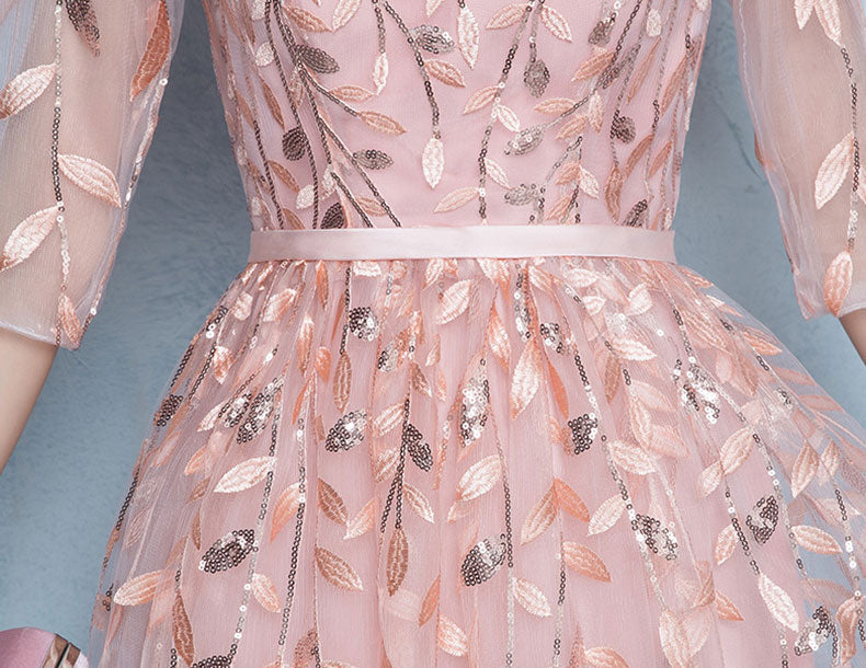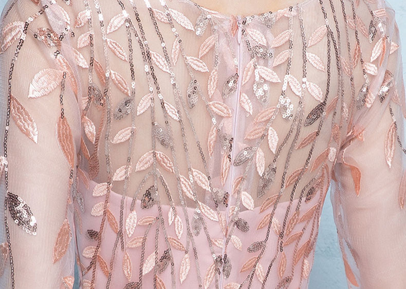Sequined Leaf Vine A-Line Full Length Prom Evening Dress