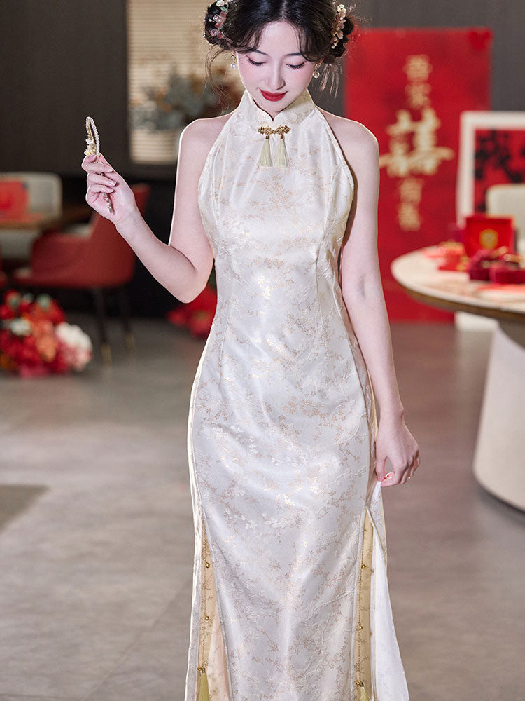 Jacquard Floral Halter Cheongsam Qipao Dress