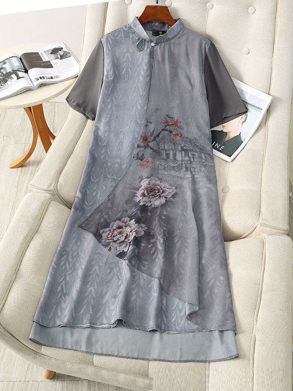 Mothers Gray Floral Qipao Cheongsam Dress