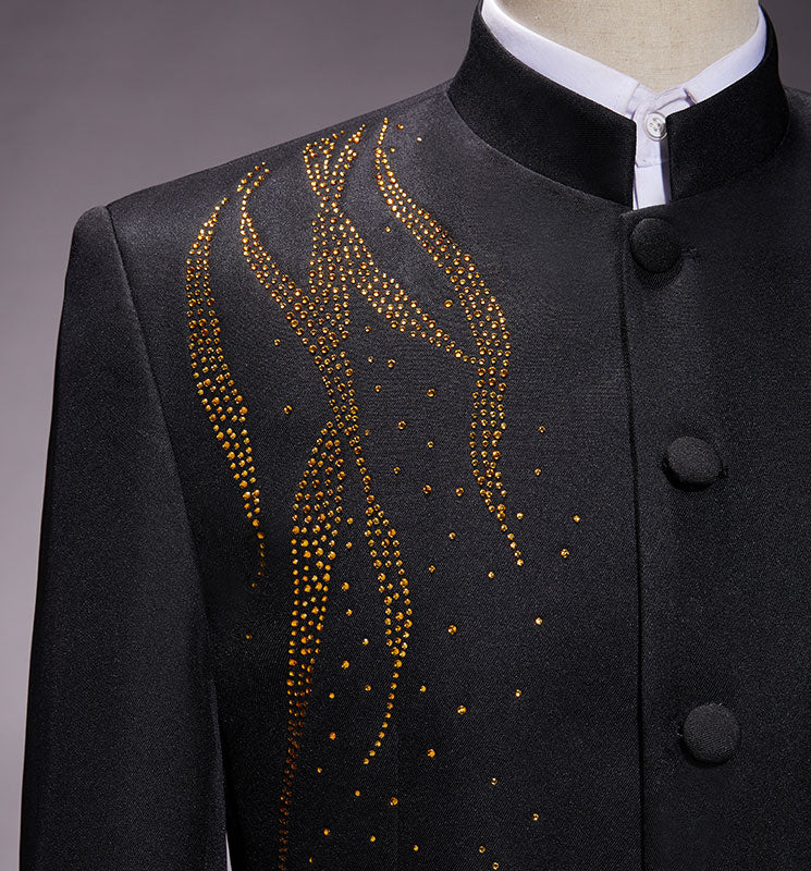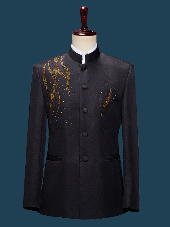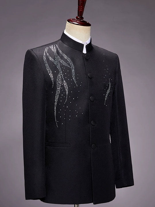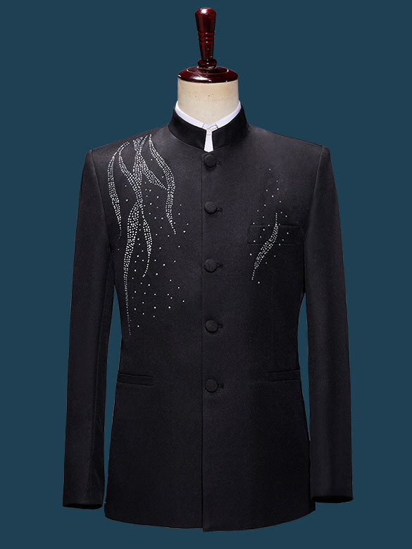 Beaded Black Men Tang Suit Jacket