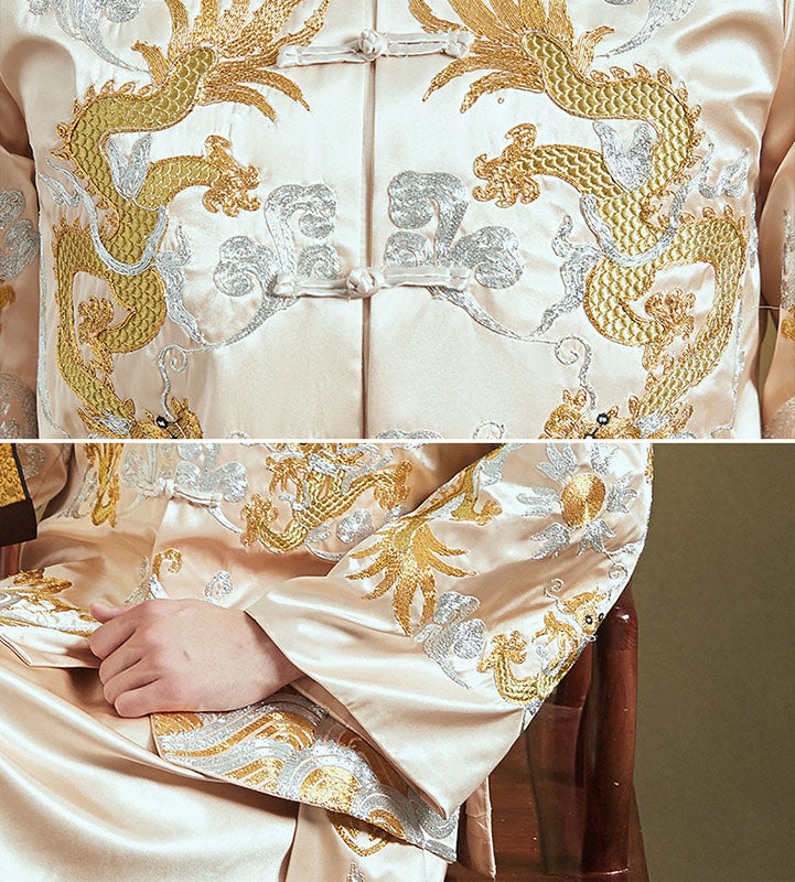 - Jacket: mandarin collar, frog buttons closure, long sleeve