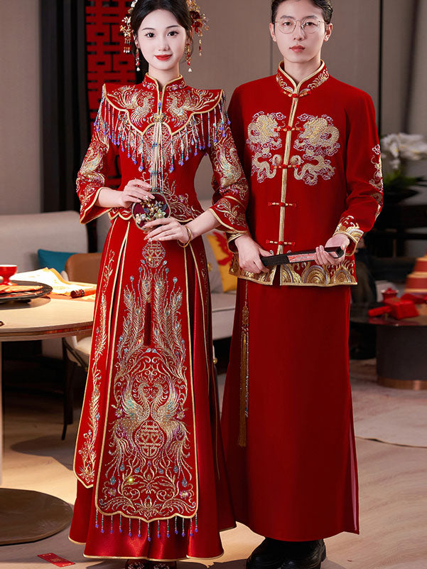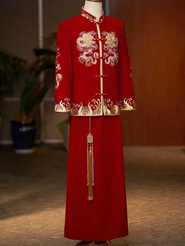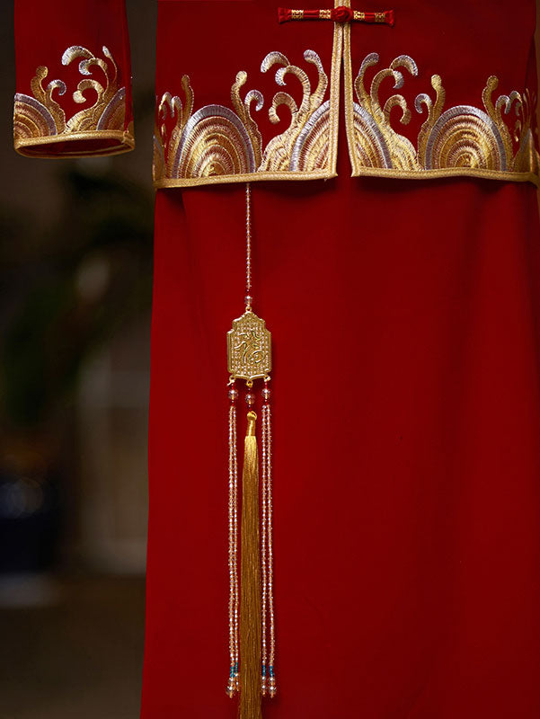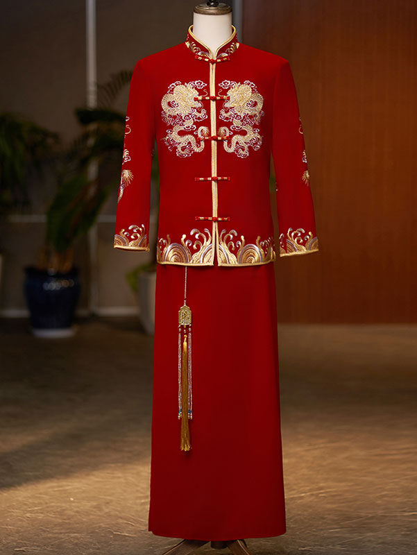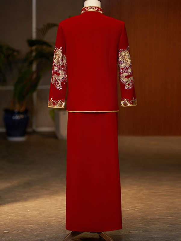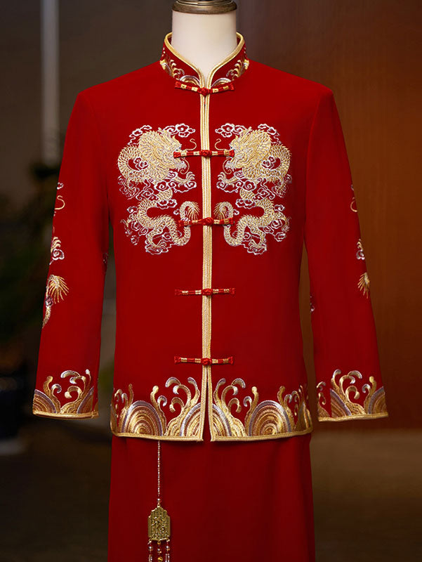- Jacket: phoenix embroidery, mandarin collar, frog buttons closure