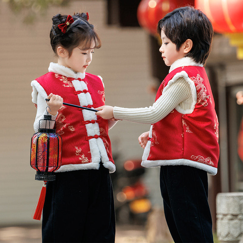 Chinese Traditional Tang Fleece New Year Vest Coat Hanfu