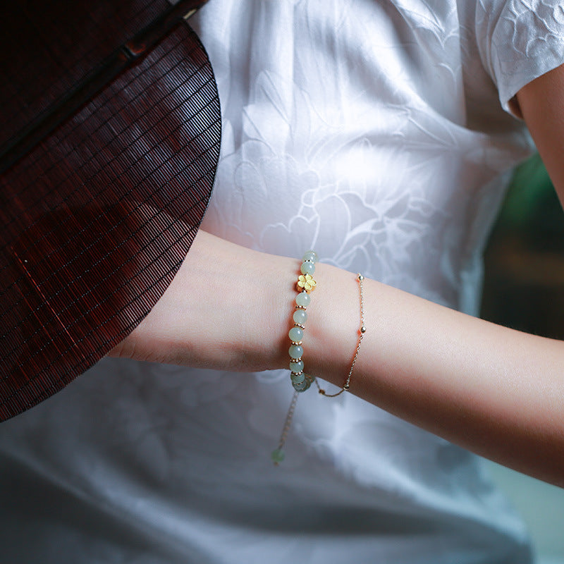 The bracelet is made of 6mm jade beads, ginkgo leaf and plum blossom pendant.
