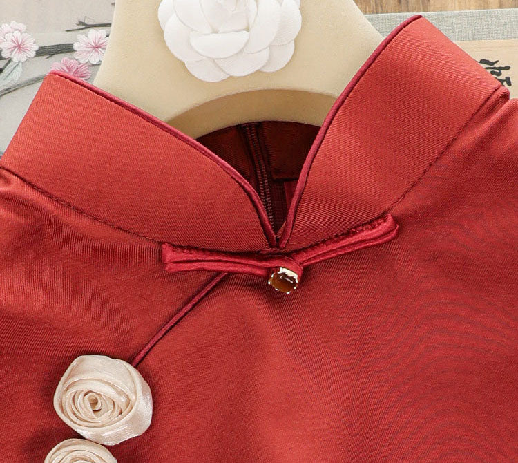 Jacquard Floral Beads Cheongsam Qipao Dress