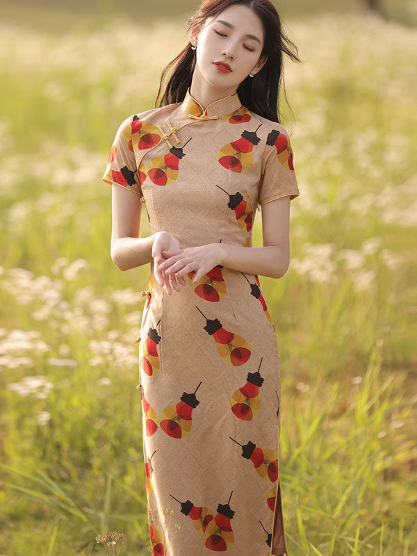 Jacquard Floral Beads Cheongsam Qipao Dress