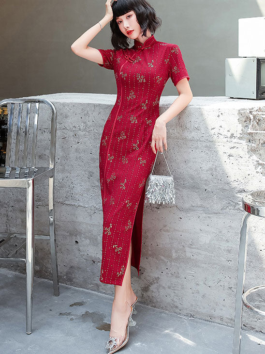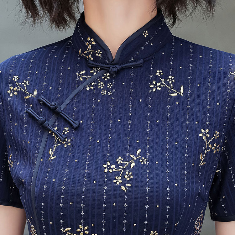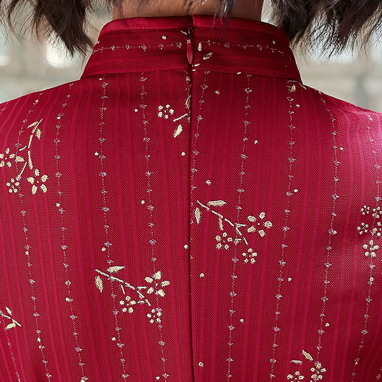 Jacquard Floral Beads Cheongsam Qipao Dress