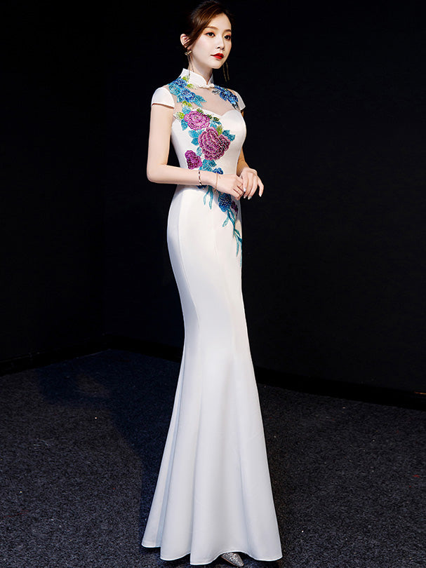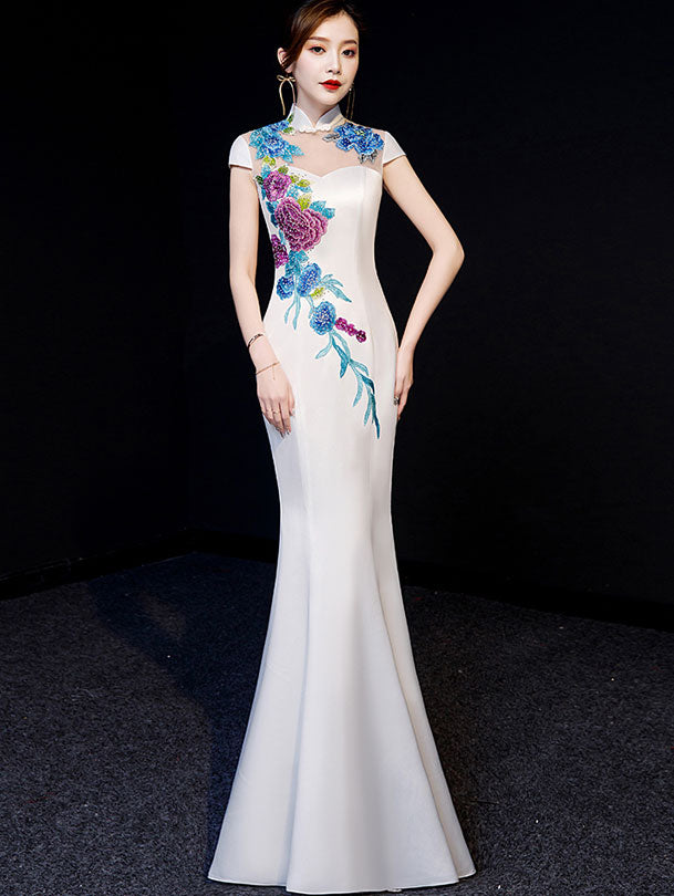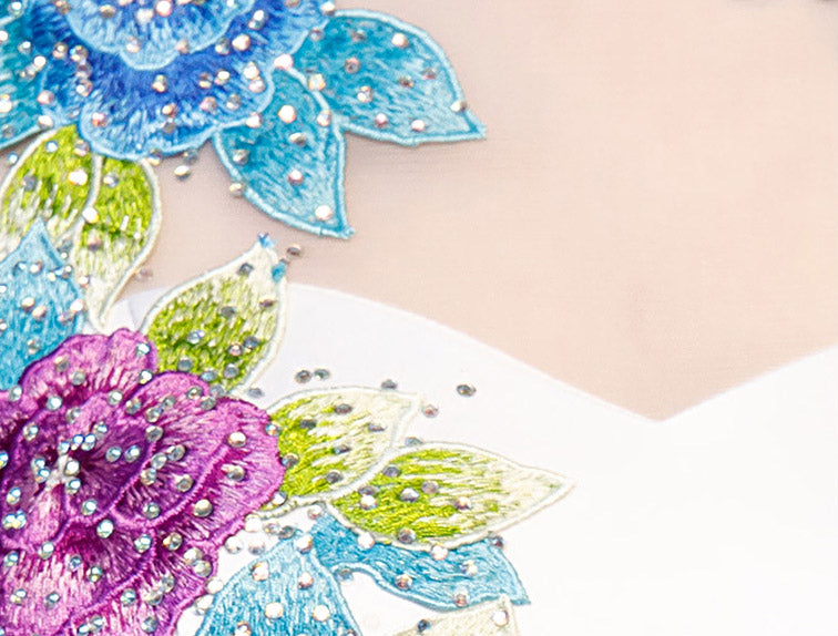 - Beaded floral embroidery
