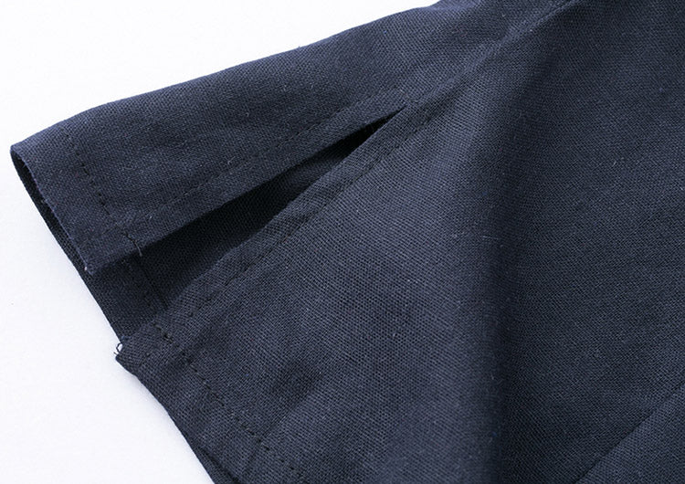 Blue Beige Linen Qipao Cheongsam T-Shirt Top