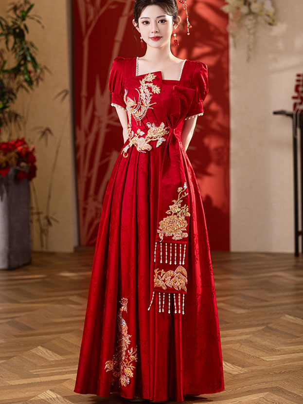 This dress is tailor made. The dress will be made with your measurements, and completed within 10 days.