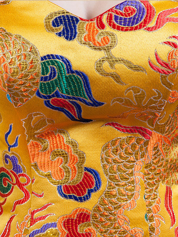 This dress is tailor made. The dress will be made with your measurements, and completed within 10 days.